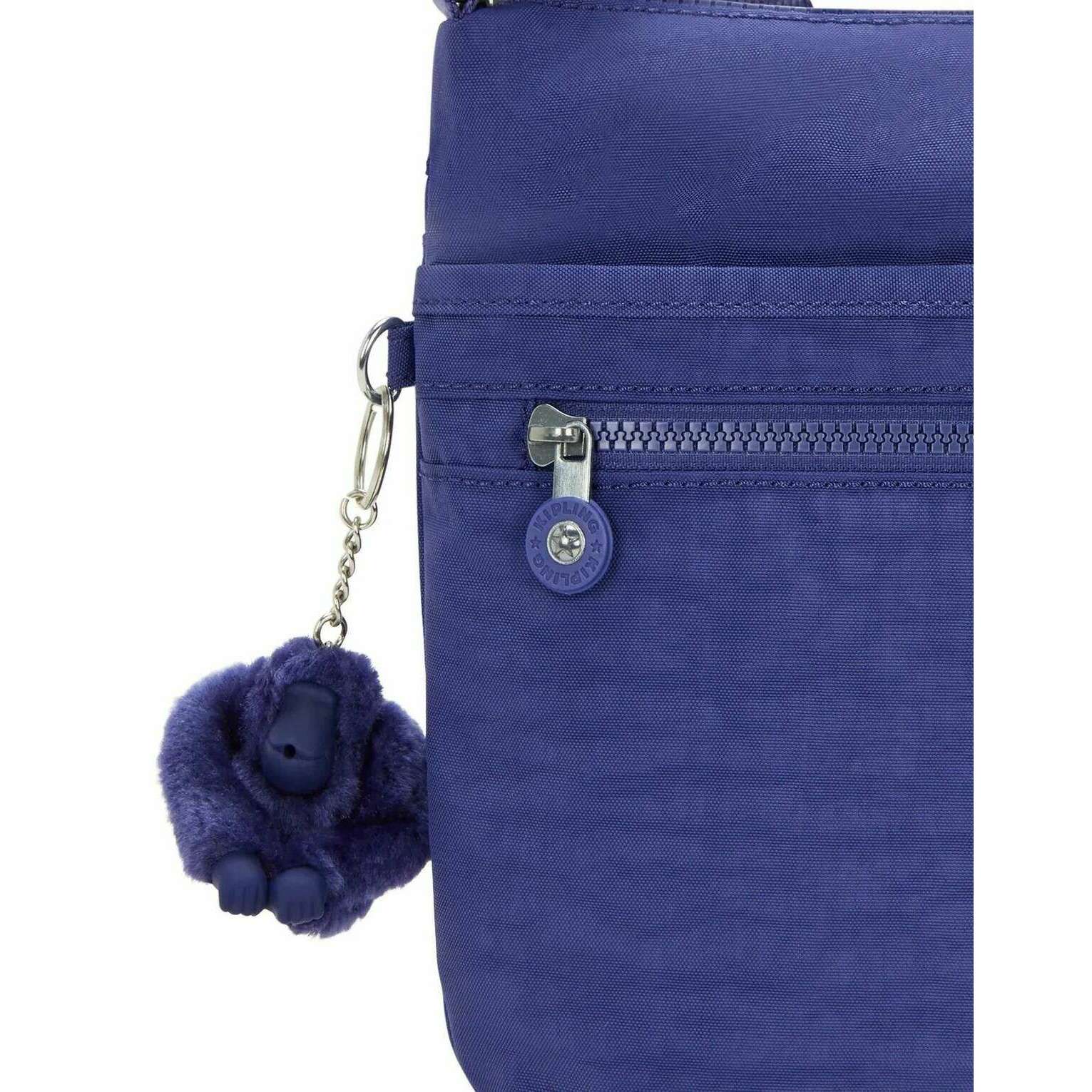 • Monkey Keychain , Adjustable Shoulder Strap , 2 Zipped Front Pockets , Zipped Rear Pocket , Zipped Main Compartment , Pen Loop , Wallet Pouch , Phone Pocket , Round Kipling Logo , Volume: 6L