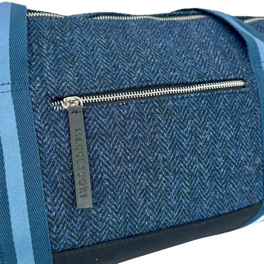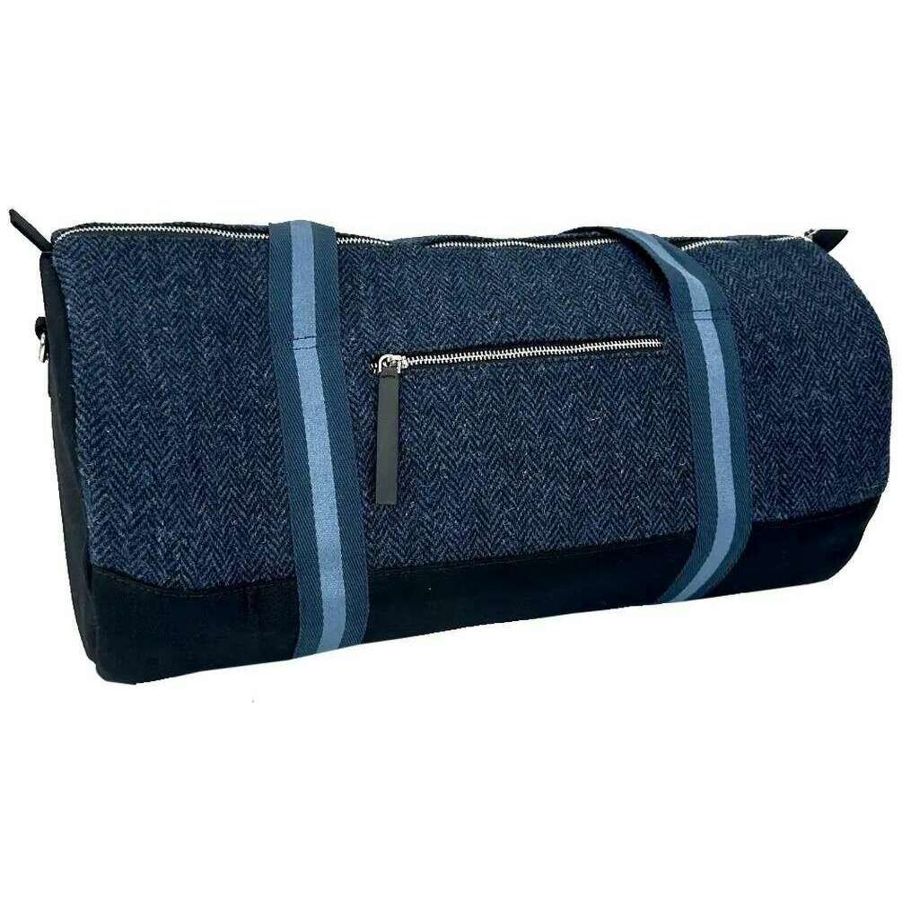 Maccessori Navy Harris Tweed Barrel Holdall Bag