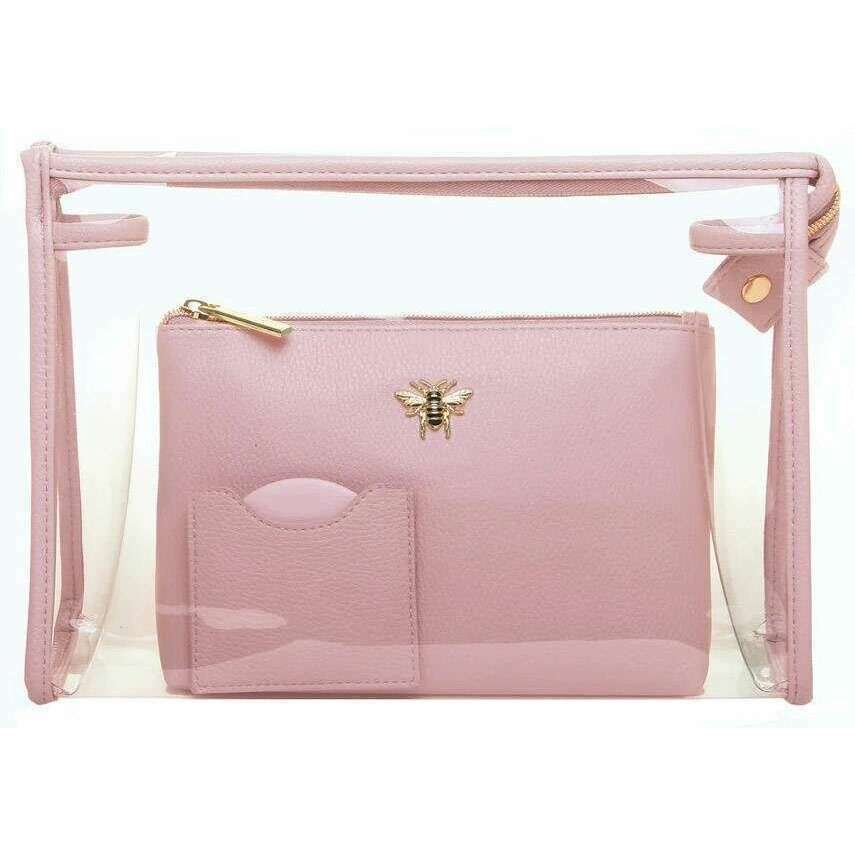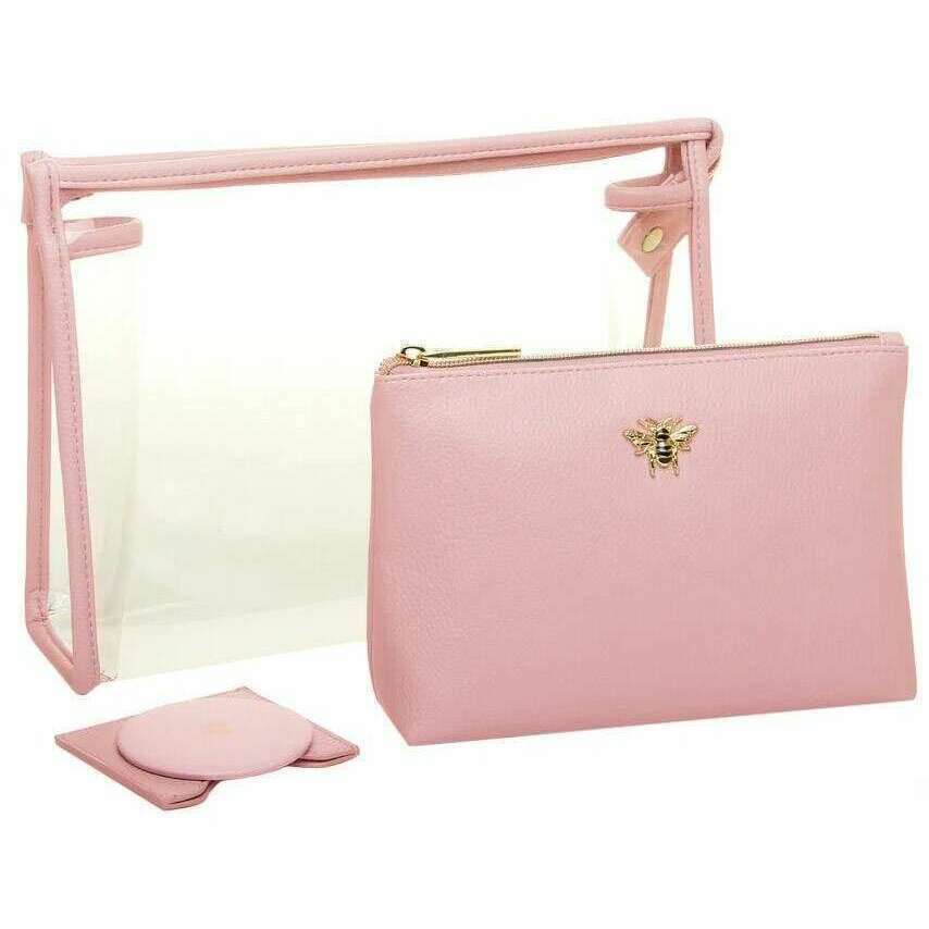 • 1 Clear Travel Case , 1 Zipped Make Up Bag , 1 Round Compact Mirror , Honeybee Embellishment