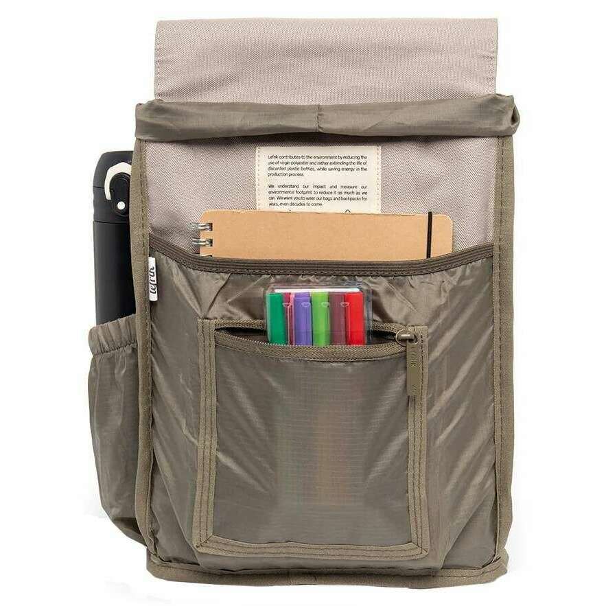 • Capacity 8L , Recycled , Sustainable , Large Main Compartment , Internal Separate Pocket , Quick Access Pocket on Flap , Security Pocket on Back , Lightweight , Adjustable Cotton Staps , Hook Closure , Water-Resistant , Vegan