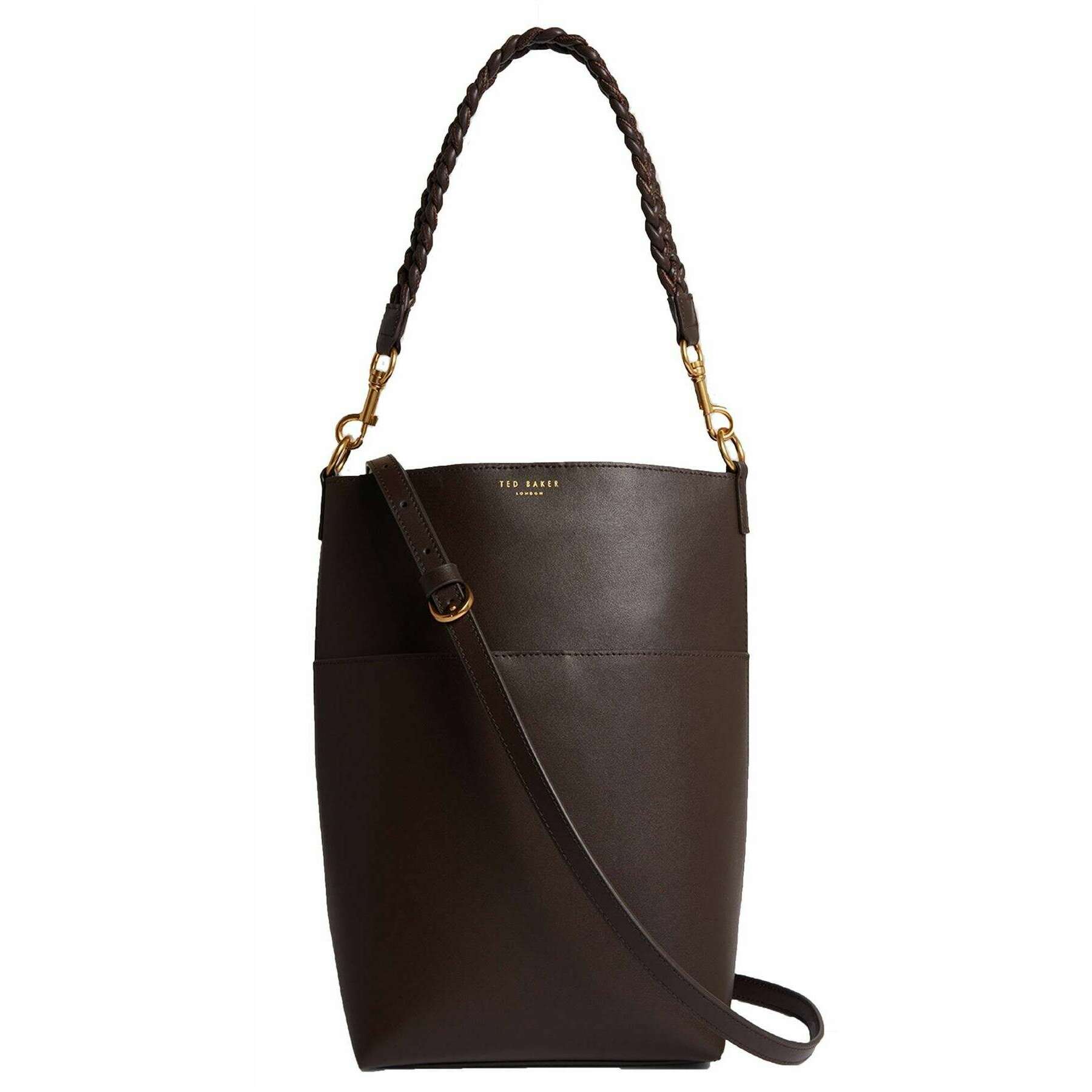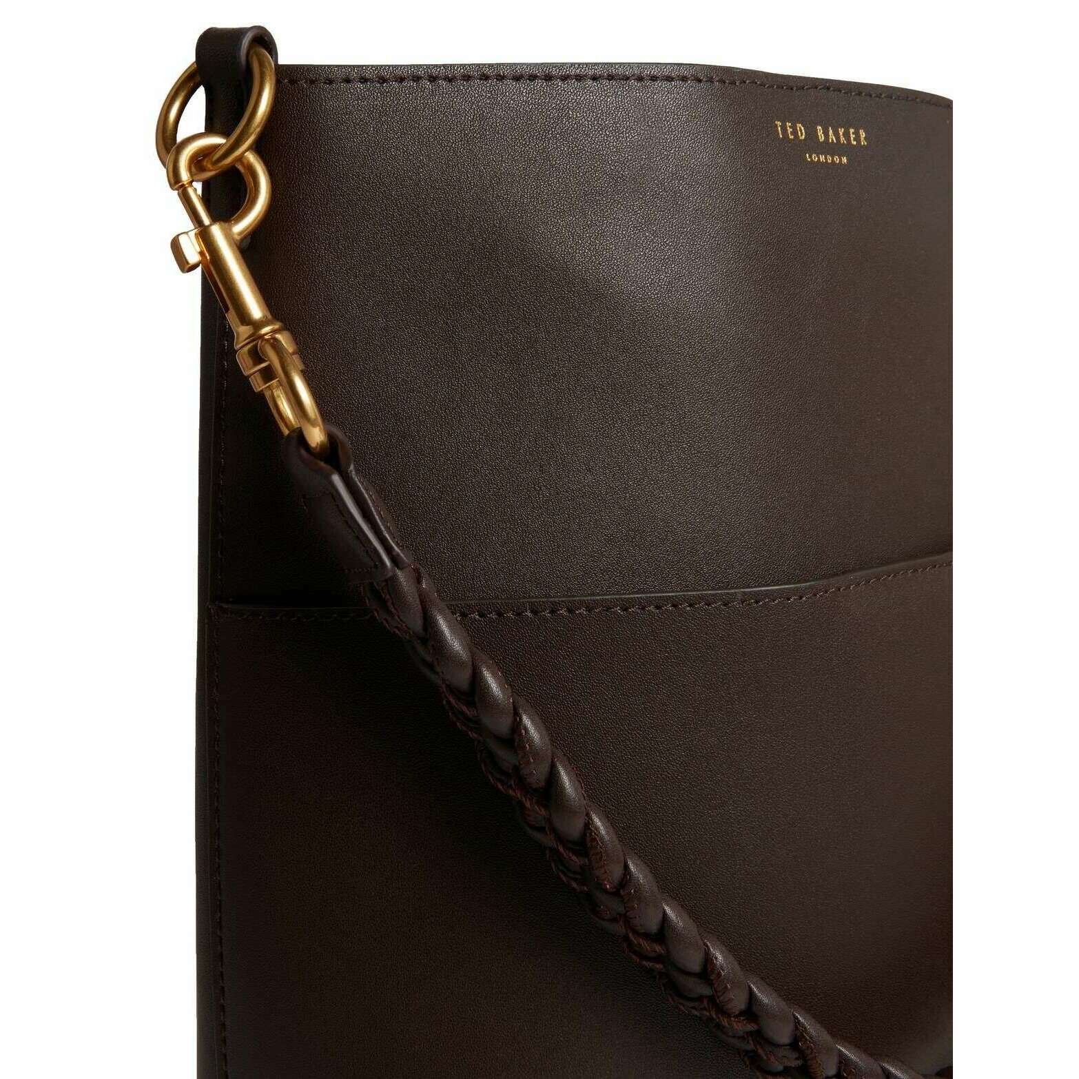 Ted Baker Brown Wannda Plaited Handle Elongated Leather Bucket Bag