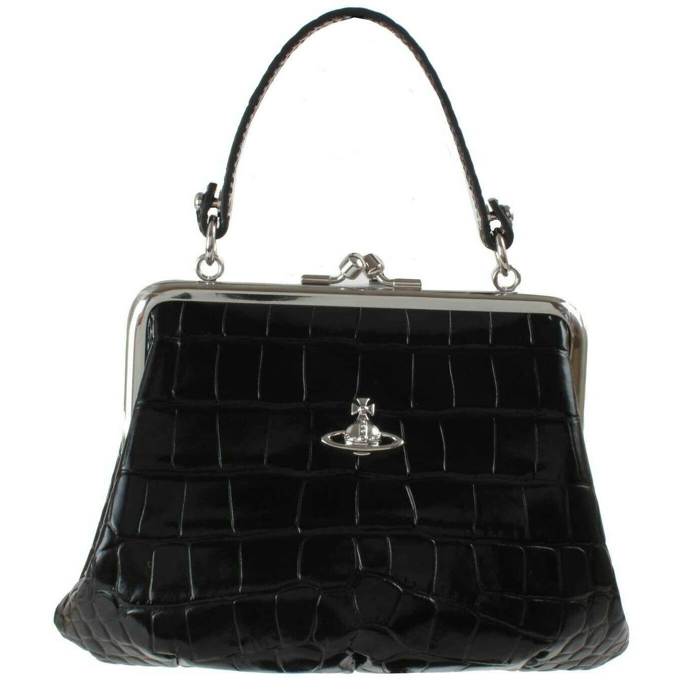 Vivienne Westwood Black Embossed Croc Granny Frame Purse